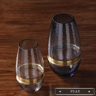 Modern Blue Gold Bottom Glass Vases Home Room Entrance Hydroponic Floral Decor Romantic Dining Table Flower Vase Home Decoration.